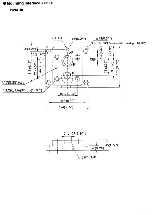 板式溢流閥尺寸圖RV-03T-20/06T-20/10T-20