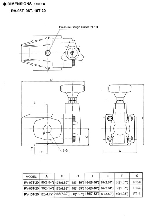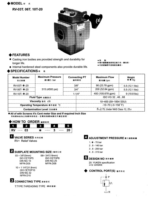 板式溢流閥型號說明RV-03T-20/06T-20/10T-20