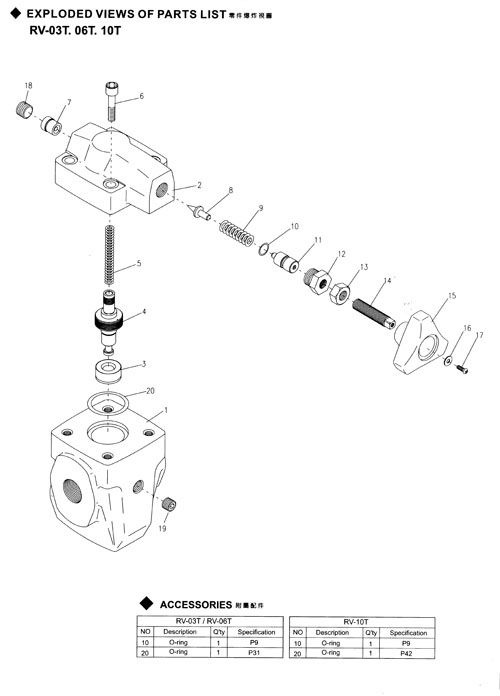 板式溢流閥爆炸圖RV-03T-20/06T-20/10T-20