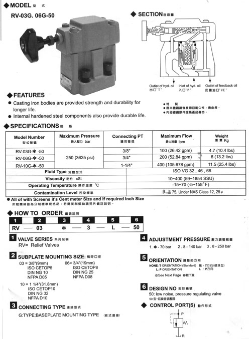 板式溢流閥型號說明RV-03G-50/06G-50/10G-50