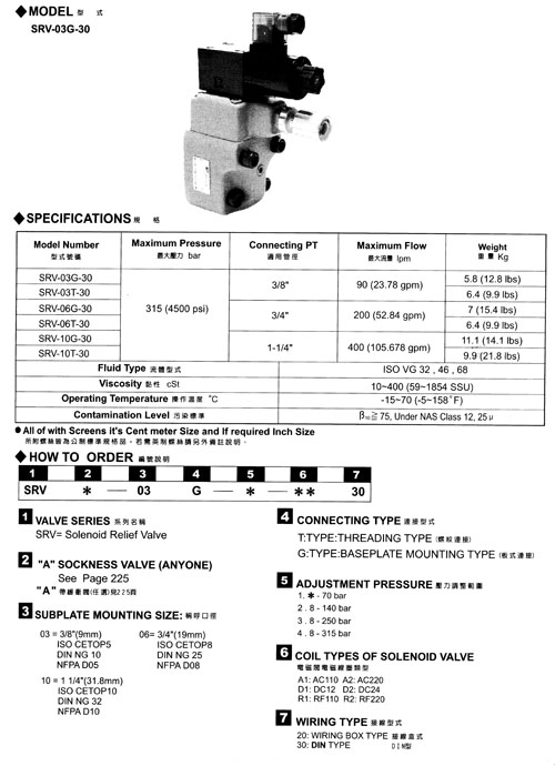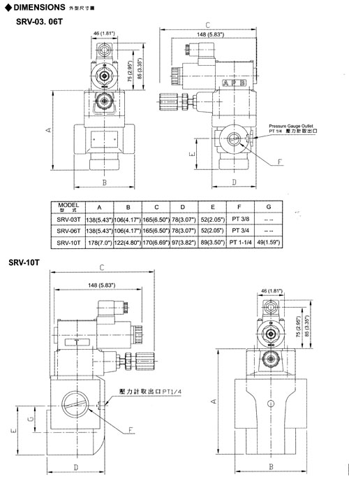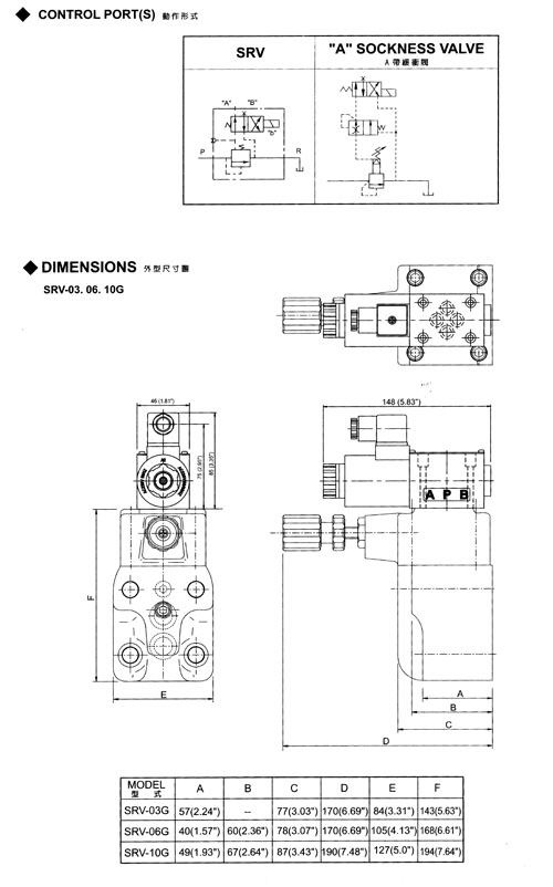 電磁溢流閥尺寸圖SRV-03/06/10-01